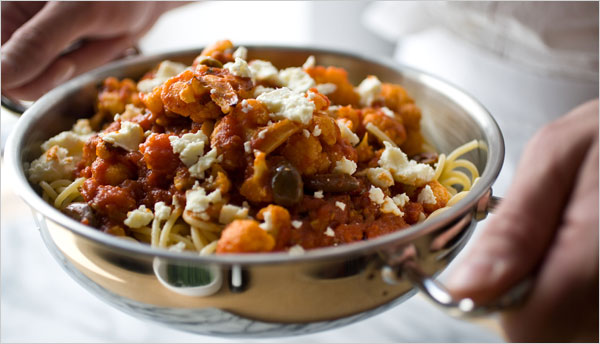 This is one of my favorite go-to dishes that I adapted from a recipe in the New York Times. Instead of using the cauliflower mixture as a pasta sauce, I use it as a flavorful side dish or easy, satisfying main course. I modify the recipe by using a whole head of cauliflower and decreasing the amount of olive oil used. One trick I found for making a little high quality olive oil go a long way is by using Misto, a handy kitchen gadget that lets you spray the oil of your choice.